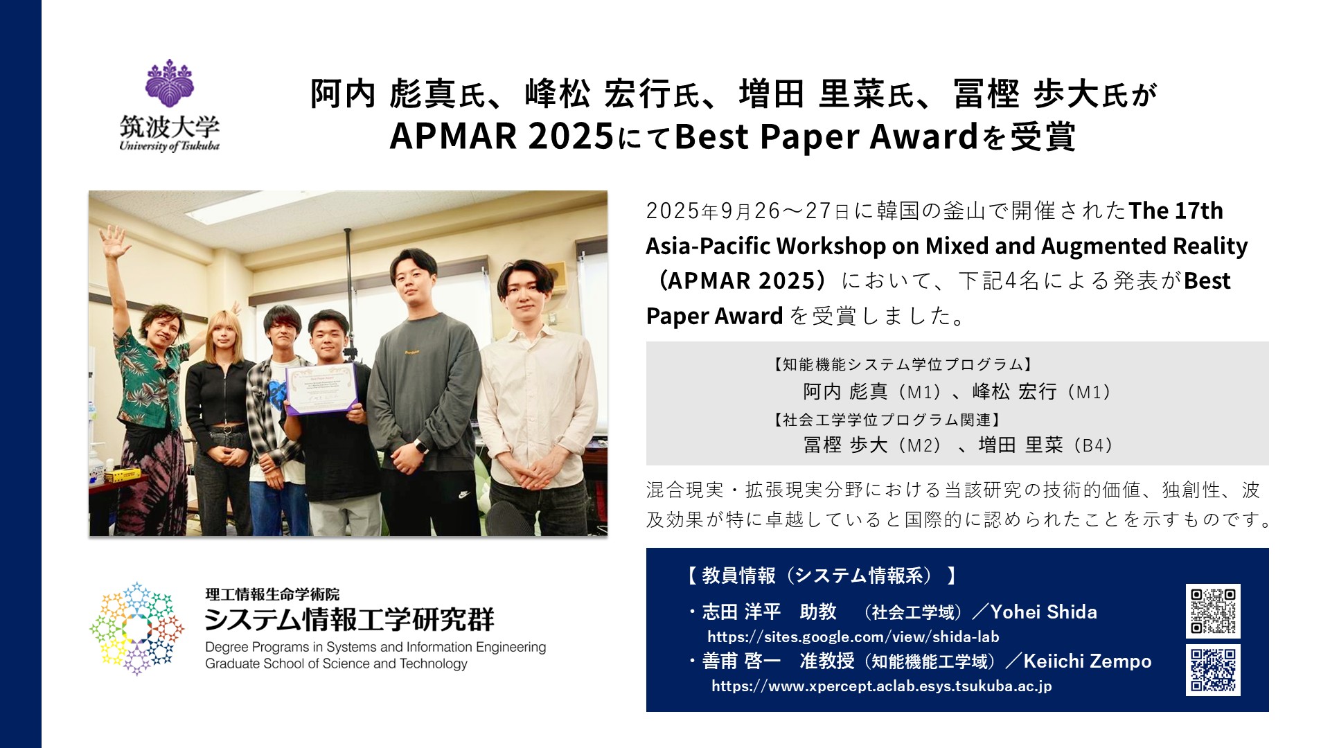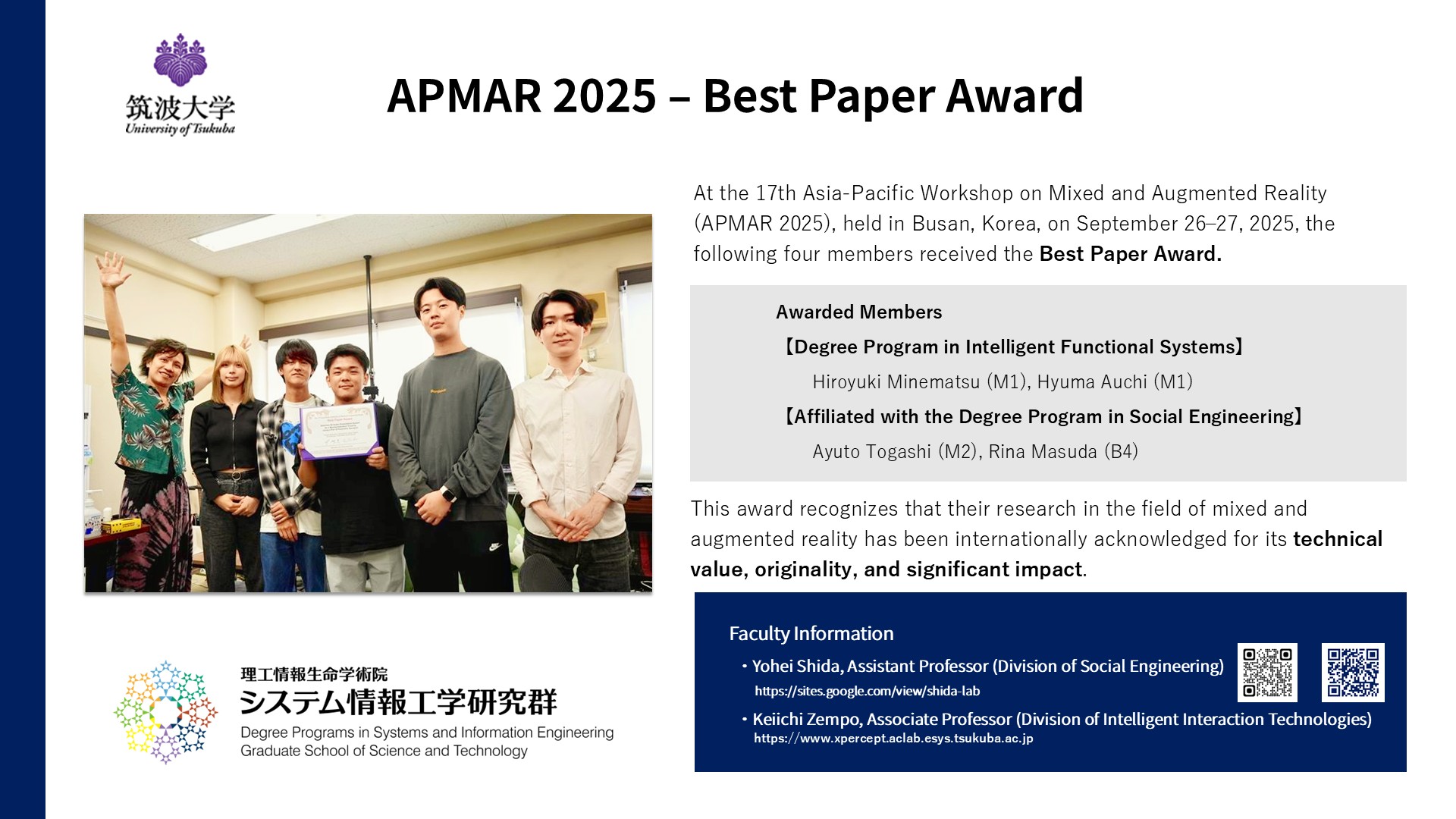 The 17th Asia-Pacific Workshop on Mixed and Augmented Reality(APMAR 2025)において、